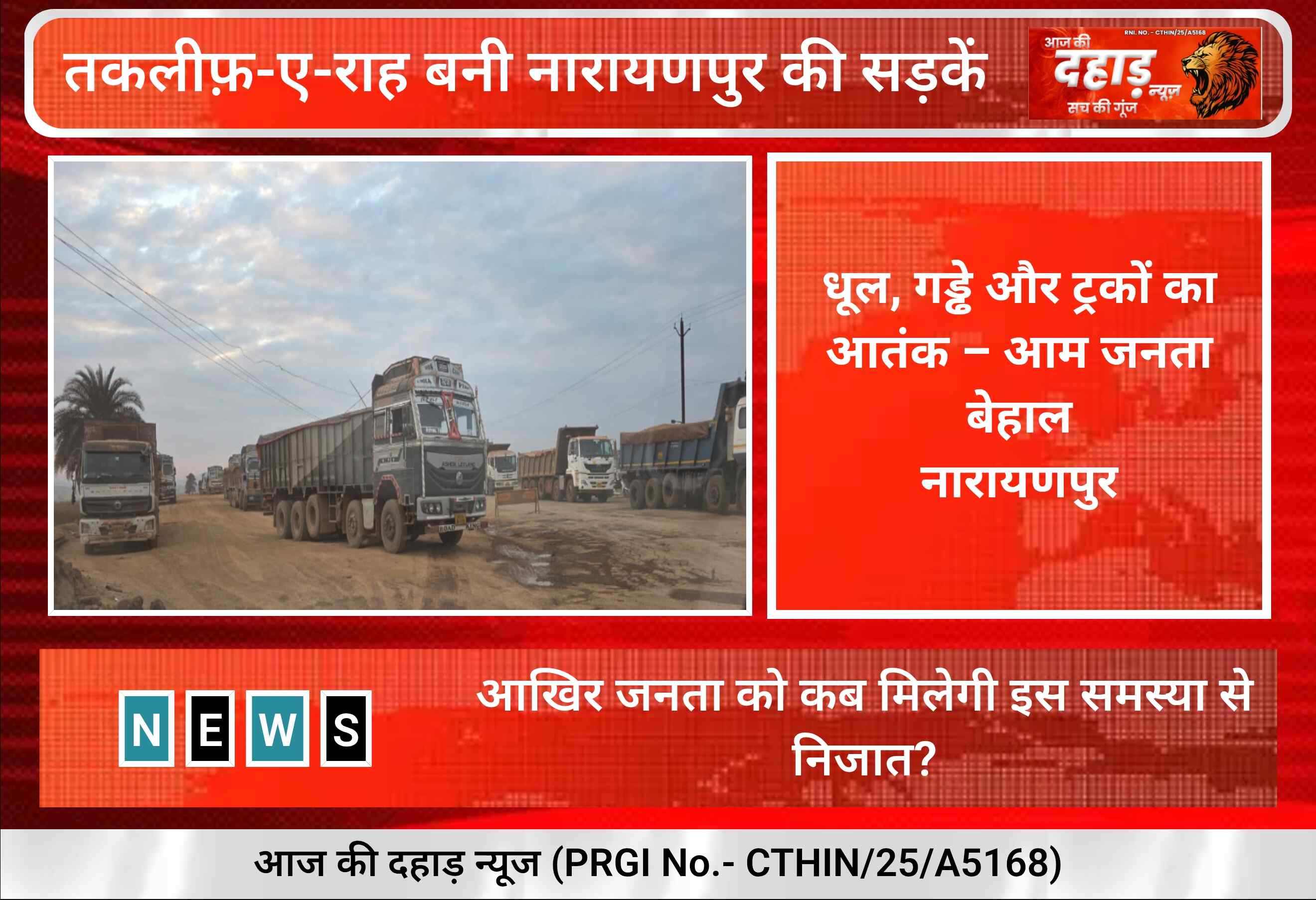 तकलीफ़-ए-राह बनी नारायणपुर की सड़कें : धूल, गड्ढे और ट्रकों का आतंक – आम जनता बेहाल नारायणपुर