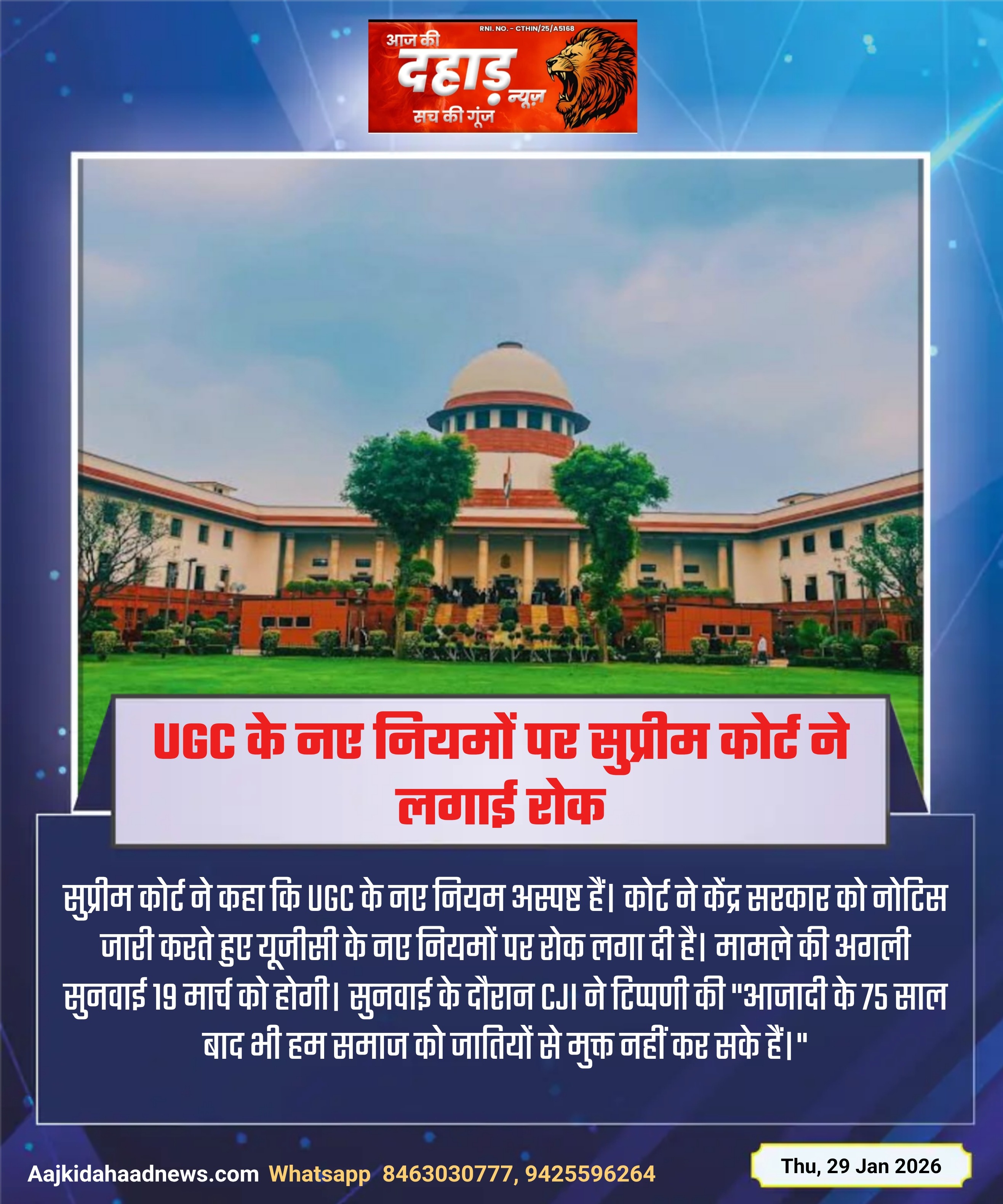UGC के नए नियमों पर सुप्रीम कोर्ट ने लगाई रोक : CJI ने कहा- 'ऐसा मत कीजिए, हम पीछे जा रहे हैं